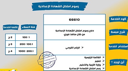 تَستطيع هذه اللّحظة دفع رسوم استمارة الصف الثالث الإعدادي عن طريق كود خدمة ( 66610 ) بواسطة فروع ومنافذ شركة فوري لتكنولوجيا المدفوعات وتقدر رسوم استمارة الشهادة الاعدادية ب50 جنيه و2 جنيه رسوم خدمه لفوري ليكون اجمالي المبلغ 52 جنيه .